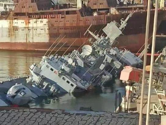 ▲ 3月4日,为了防止被俄方虏获而自沉的乌克兰海军旗舰,1135Ⅲ风暴海燕型护卫舰“格特曼·萨盖达奇内”号