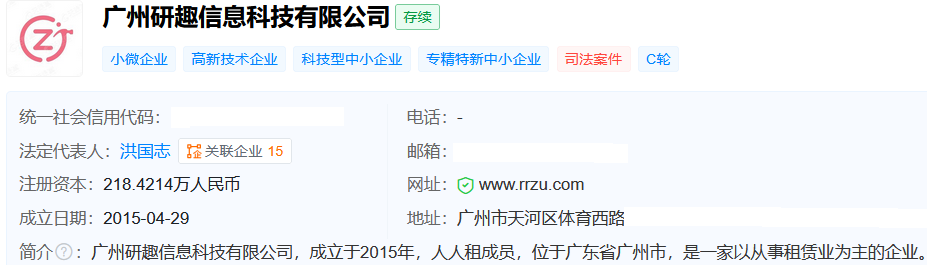 或是看准了这一商机,来自广东阳江的创业者——洪国志认为,租赁行业正在快速崛起,将会成为一种全新的商业模式,于是萌生了创办“人人租”的想法,并在2015年春天创办了人人租的母公司广州研趣信息科技有限公司(下称“广州研趣”)。
