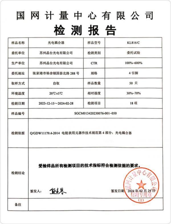 KL816晶体管光耦——已通过国网认证