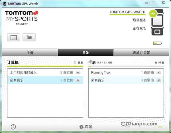 连接后可以将电脑的音乐导入都手表,同时也可以将手表的音乐导出到电脑。此外PC端还支持同步APP的云端数据记录,只要手表成功连接到PC端后会自动上传数据,同时跳转到浏览器访问官方的数据分析页面,可以看到详细的运动分析数据记录等。