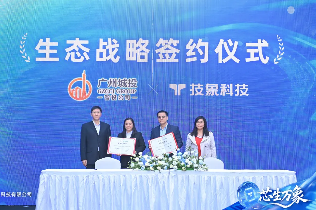 技象科技董事长徐新,广州市海珠区发展和改革局党组书记、局长李满红,中国电科太极总经理特别专务陈玥含,广州市海珠区科技工业商务和信息化局副局长吴小莹,中山大学电子与信息工程学院教授、博导夏明华教授,广东省物联网协会秘书长曾明,顺德职业技术大学副校长杨小东,广州市半导体协会秘书长潘雪花以及技象科技总工程师温文坤博士等嘉宾,共同为技象科技新一代国产自研芯片——象芯3号举行了首发仪式。
