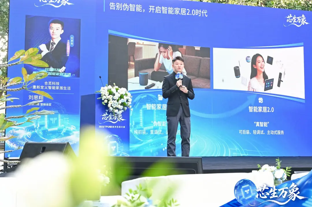 合觅科技营销总监刘思翔提出”智能家居2.0″理念,展示基于TPUNB无线通信技术的全屋智能解决方案,实现后装化部署、轻调试运维与主动式服务,突破传统智能家居体验瓶颈。