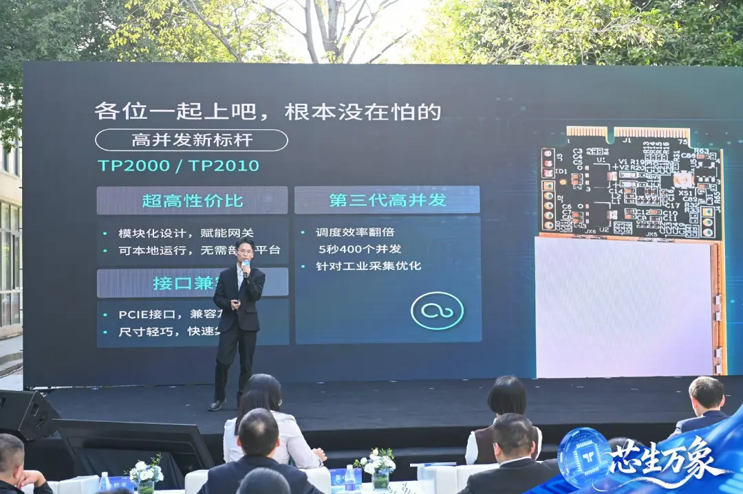 技象科技产品事业部总经理梁居发发布了多款TPUNB通信模组和网元产品,包括覆盖距离突破30公里的TP1209模组,TP5603轻量化DTU、TP5609低空图传终端等,形成从芯片到终端的完整产品矩阵,满足工业、安防、低空等领域多样化需求,并强调硬件开源、高并发与接口兼容性,推动物联网设备快速集成与部署。