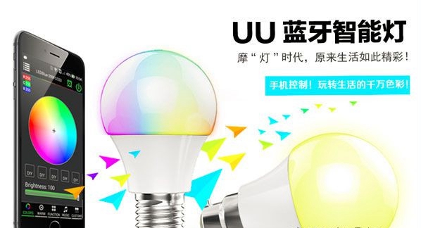 通过手机蓝牙连接UU,遥控距离最远可达40米。UU采用顶级蓝牙进口芯片,低功率,抗干扰性强。UU还具备一些很人性化的功能,它可以记住关灯前的一个模式(当重启时,灯显示的效果是上一次最后关闭的那个灯效果)。另外,每次启动灯泡,灯泡都处于开的状态,这样可以让你即使没有手机也能随时打开灯泡。