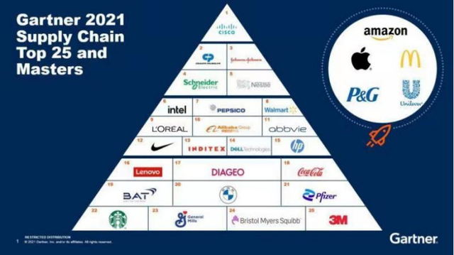 图1 2021全球供应链25强,中国企业阿里巴巴与联想集团入选