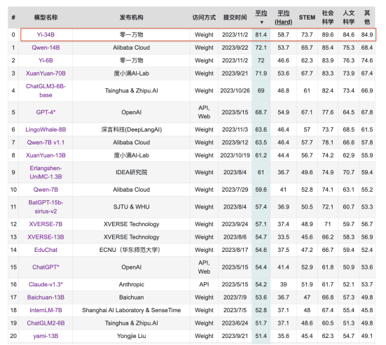 Yi-34B 登顶全球英文及中文权威榜单 No.1