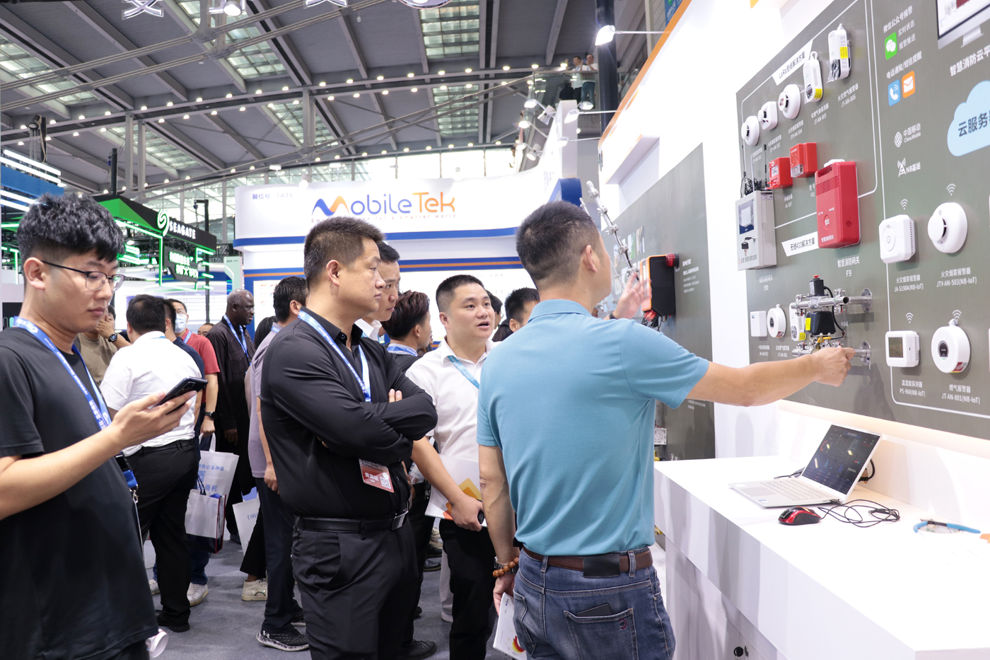 此次展会,智能烟雾报警器、燃气报警器、工业燃气、消防网关、智慧消防云平台等产品以场景模拟的方式展出,用户能够亲身体验报警、联动、平台处理等功能,整个板块互动性更强。