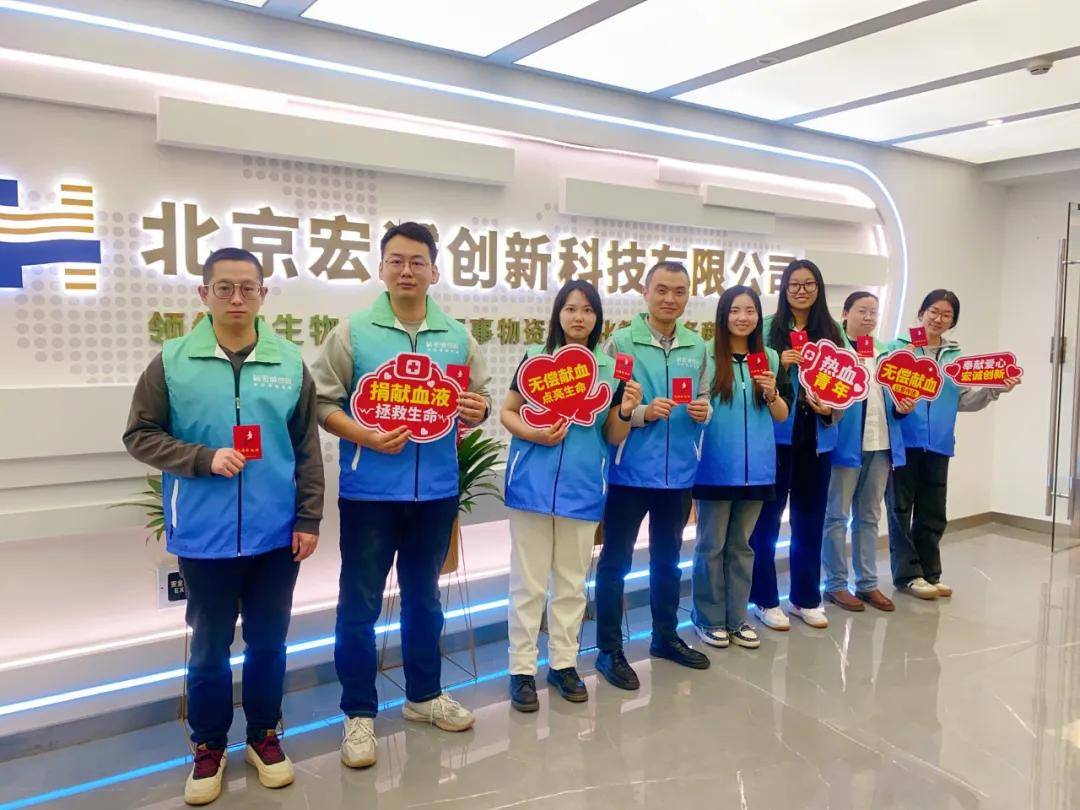 2024年3月29日,宏诚创新志愿者服务队参加北京经开区博兴街道组织的无偿献血活动,共有8人成功献血,累计捐献1800毫升血液。