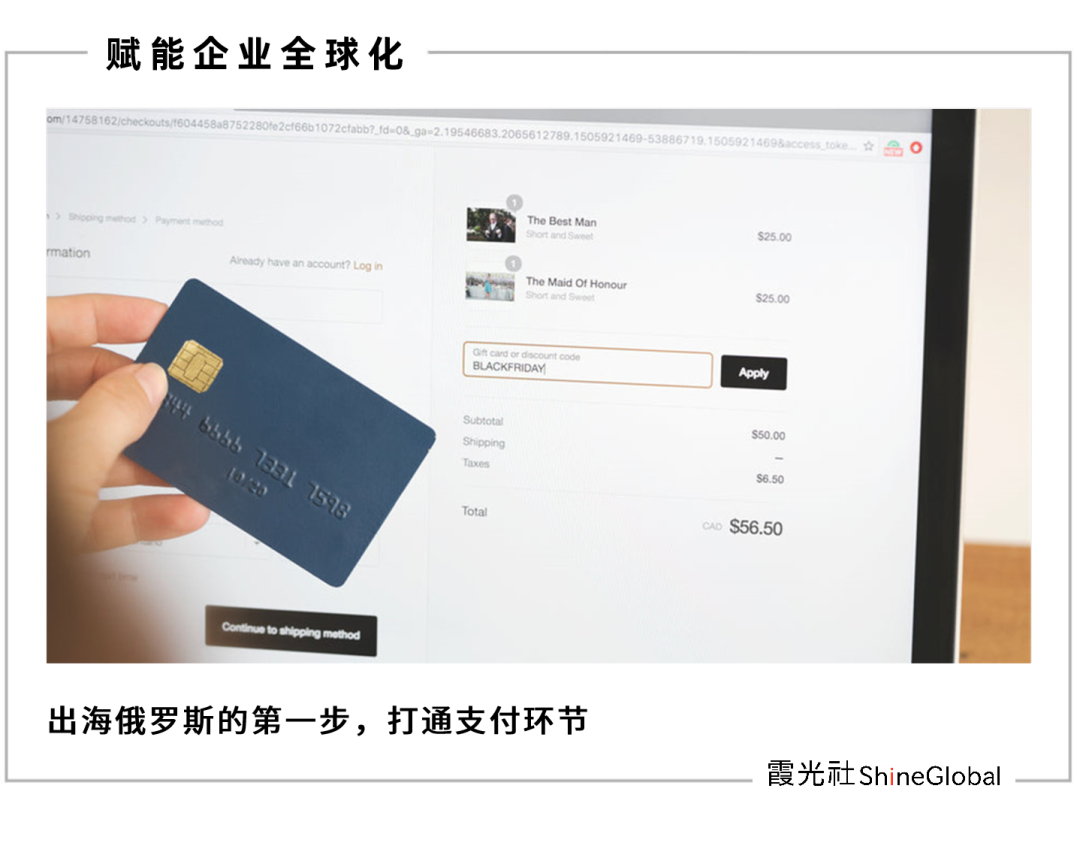 在“冲突”发生前后,以美金结算方式的Visa和MasterCard等欧美大型的支付公司,都相继在俄罗斯停止使用。因此,在俄罗斯本土银行与中国出海商户之间搭起桥梁,成为“迫在眉睫”的头等要务。