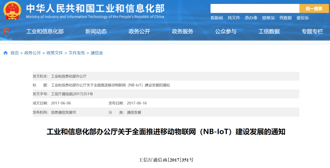 2017年6月,工信部办公厅发布的《关于全面推进移动物联网(NB-IoT)建设发展的通知》,首次在正式发布文件中提出“移动物联网”这一概念,并给出了未来3年的发展目标。在这个时期,NB-IoT几乎代表了移动物联网,政策资源对其大力倾斜。