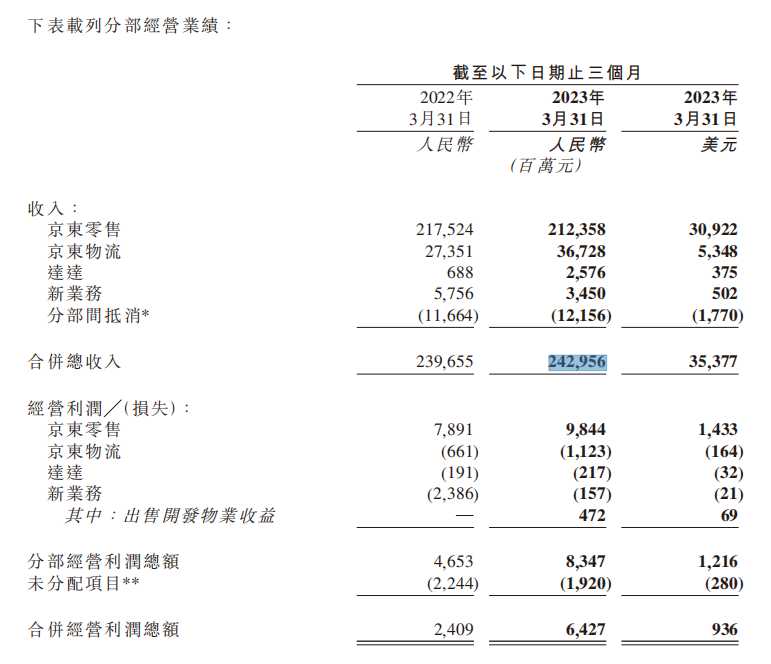 5月11日,京东集团公布2023年第一季度业绩报告。财报显示,一季度京东营收为2430亿元,同比仅增加1.4%,增速再创历史新低。