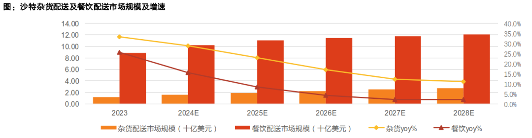 根据Statista披露的数据,中东外卖市场渗透率持续提高,预计2025年有望达40%左右,2018-2023年外卖市场规模同比增速基本维持在20%以上;从ARPU水平来看,得益于较高的居民可支配收入水平,2024年中东地区预测以570美元的外卖ARPU显著领先于全球其他地区,按照单均16美元测算则年化人均可达约36单。