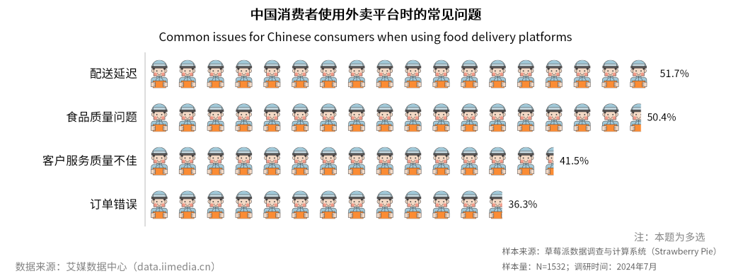 伴随科技进步,城镇和农村居民人均消费支出不断提升以及各路漂泊的游子陆续返乡,外卖正在逐步融入乡镇居民的日常生活,超七成的乡镇消费者每周点外卖的频率在3次以上;消费者在使用乡镇外卖平台时常遇到的问题有食品质量问题(50.4%)和配送延迟问题(51.7%)。超四成的消费者期待提升客户服务响应速度(47.1%)和平台商家多样性(46.3%),平台应加强内部管理和技术创新赢得消费者的长期信任。