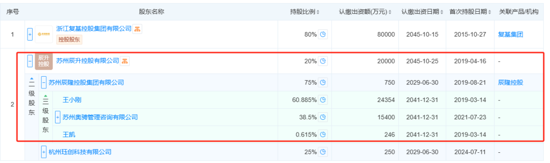 而在2018年3月接过开天物资控制权的荻溪资本,与复晖实业是存在关联的。天眼查显示,荻溪资本实控人王凯的另一重身份,为苏州辰升控股的法定代表人,而苏州辰升持有复晖实业20%的股份。