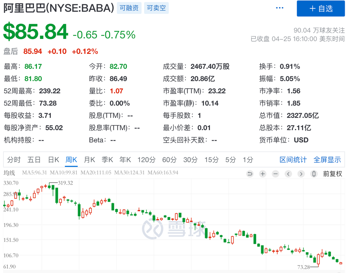 马云财富缩水的主要原因是,阿里巴巴股价的持续下挫,2022年以来,阿里巴巴美股、港股股价不断刷新新低,年内累计跌幅分别达27.7%、28.4%。