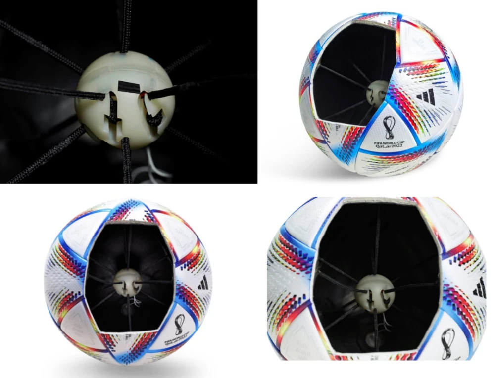 为了让足球具有优异的抗震性能,世界杯官方指定用球“Al Rihla”内胆中新的悬挂系统使用了多个连接柱,将芯片固定在球体中心的囊壳中,从而保证了球的平衡性不受影响。