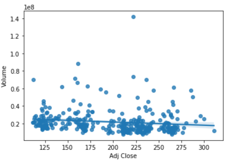 上图是我们制作的从2021年11月迄今为止,阿里交易量与股价的分布图,图中拟合线乃是呈水平状,也就是说,即便股价有如此大的波动,但成交量依然保持大致同一水平。