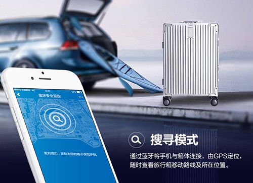 利马赫智能旅行箱,搭载GPS定位系统,可监控旅行箱具体位置,记录旅行轨迹。当旅行箱超出所设安全距离,手机APP就会自动报警,防止行李丢失。