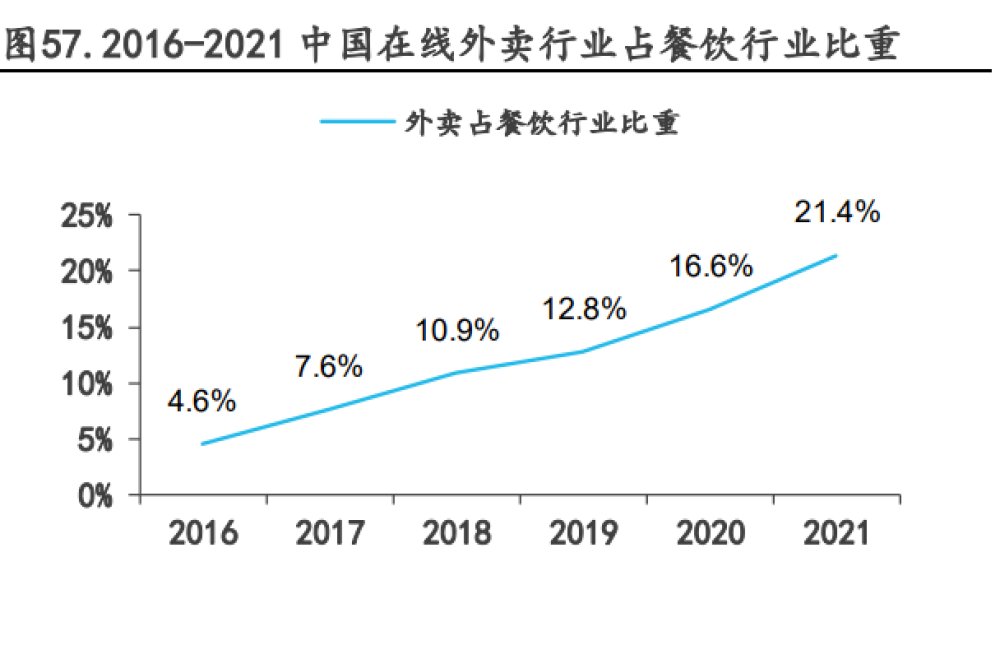 行业比重攀升外,《2021年中国连锁餐饮行业报告》数据显示,截至2021年12月,我国网上外卖用户规模达5.44亿人,较2020年12月增长1.25亿,各类调查应用中增速最为明显,网民使用率上升到52.7%。