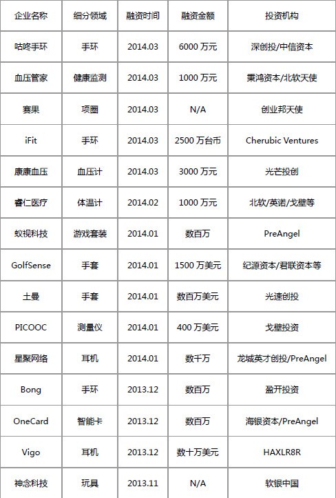 表1 2013-2014年主要的智能产品投融资情况汇总