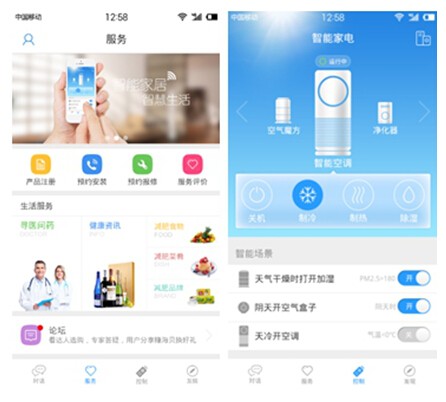 海尔U+智慧生活APP作为首个引入人工智能的智能家居平台,引入了微软小冰。它能根据你的生活习性与你“对话”,从“被动控制”变为“主动服务”,实现智能家居的双向沟通。