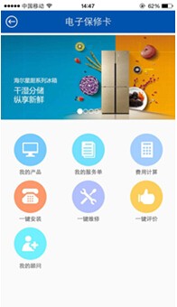 按照APP推荐的菜谱买好菜回到家,室内的温度已调到适宜的温度,室内空气已被净化干净。正准备开始做饭,却发现厨电坏了。但是你已经不记得厨电的购买日期和型号了,怎么办?别担心。打开APP里的电子卡保修功能,一键直连官方售后,实现一键保修、一键安装、一键评价,服务标准、收费公开透明便有专业人员上门来服务。你还可以通过服务功能,将所有品牌的家电产品信息录入其中,建立你的家电档案,代替纸质保修凭证,再也不用担心记不住产品信息和找不到保修凭证。
