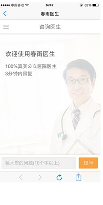 如果你觉得身体有些不舒服,你还可以在线向医生咨询关于病情的相关问题,并会及时获得医生的在线回答,随时随地享受健康生活。