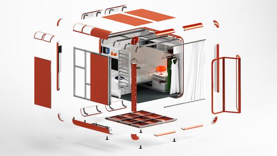 除了小型睡眠舱,设计师们还利用这个空间规划其它类型的居室,包括传统宿舍,以及四人住的阁楼。