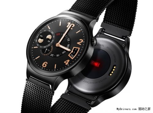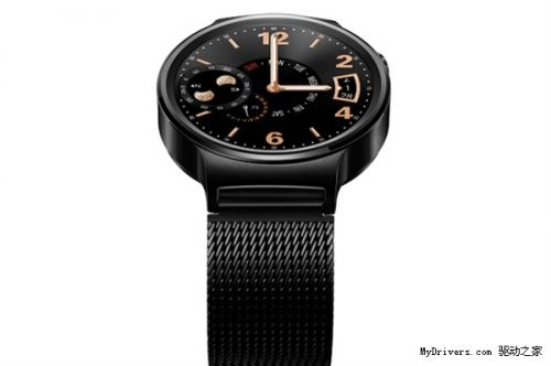 华为智能手表搭载Android Wear操作系统,这款圆形手表配置1.4英寸 AMOLED 触摸屏幕、防刮的蓝宝石玻璃、冷锻加工的不锈钢框架,搭载高通 1.2GHz 处理器,包括 4GB 内存、512MB RAM 存储空间,配以300毫安的电池,并且支持蓝牙 4.1,内置心率检测传感器和6轴传感器。Huawei Watch将是华为穿戴式系列产品中的首款智能手表。