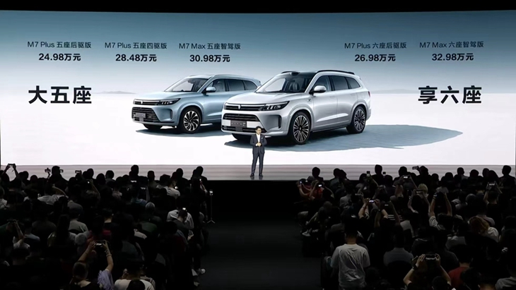 全系售价——问界新M7 Plus,五座后驱版24.98万元、五座四驱版28.48万元、六座后驱版26.98万元。问界新M7 Max,五座智驾版30.98万元、六座智驾版32.98万元。即日起至2023年10月7日,预定问界新M7,可享价值33000元的权益。