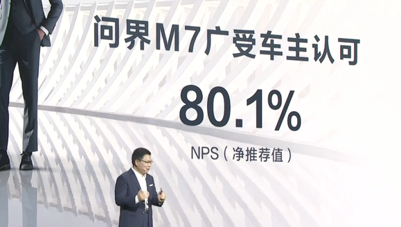 此外,问界M7的车主们对于自己的车型也非常满意。据发布会提供的消息,问界M7广受车主认可,该车的NPS(净推荐值)达到了80.1%。