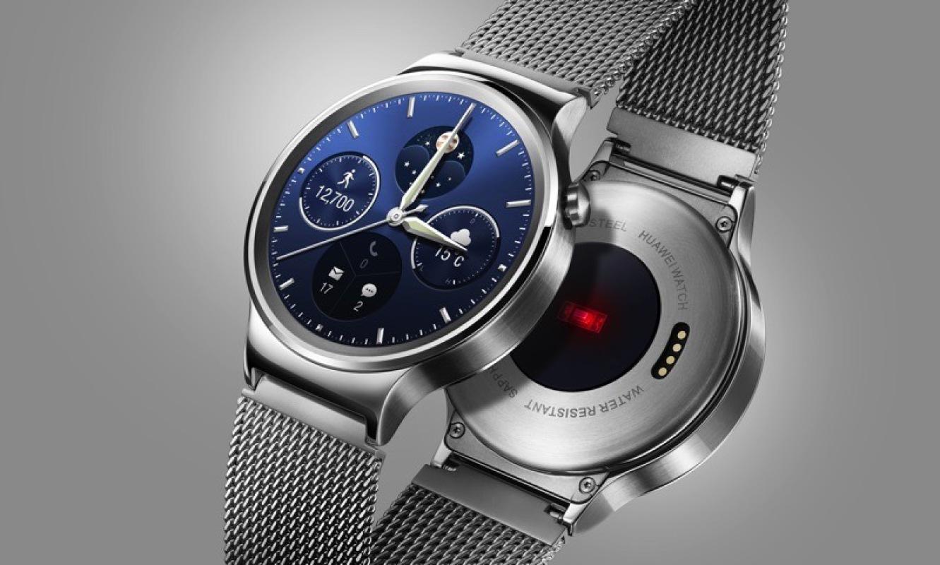 华为 Watch 配备1.4寸400*400高分辨率AMOLED屏幕,PPI为286;10,000:1 的高对比度;内置心率监测模块和6轴运动传感器,支持呼叫提醒、智能追踪等运动功能;搭载Android Wear系统,在系统界面和操作上与其他安卓智能手表类似,华为搭建支持第三方应用服务的健康平台,涵盖Google Fit和Jawbone。