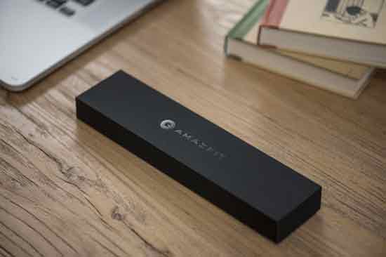 Amazfit月霜包装盒一上手就感受到了华米的用心,整体雅致黑,大小适中,手感非常舒适。细细摸了一下外包装盒的材质,用的是黑色触感纸,有着极佳的手感。正面的Amazfit和Logo泛着低调的光泽。