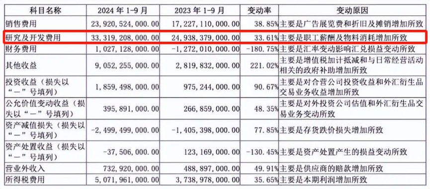 首先,是比亚迪的研发投入。他们前1-9月就砸了333.2亿!同比增长33.6%。而它在过去20年来,就累计研发投入的近1500亿。甚至很多时候,研发投入还是净利润的3~4倍!