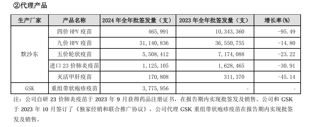 比如,财报显示,2024年12月4日,公司与葛兰素史克生物、葛兰素史克香港(以下合称“GSK”)签署了《独家经销和联合推广协议补充协议》。协议约定,双方将根据市场变化、产品需求,采购与供应重组带状疱疹疫苗。此外,双方将在中国大陆地区独家探索并积极促成初步为期10年的呼吸道合胞病毒(RSV)疫苗商业化合作。