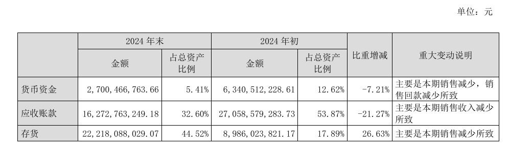最后,也是最关键的,目前智飞生物去库存压力高悬。财报显示,截至2024年底,智飞生物的库存余额为222.18亿元,较2023年底的89.86亿元增长了147.25%,占总资产的比重也提升至44.52%。