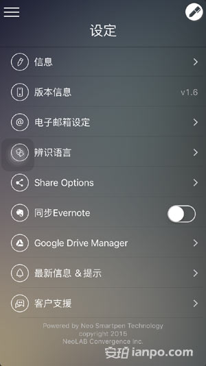 Neo Smartpen N2目前基本支持三大系统平台,苹果,安卓,和Windows mobile,可在应用商店搜索Neo notes进行下载,APP的操作十分简单,开启后APP会提示进行连接但无需注册,连接的过程十分简单主要根据图示进行操作即可,连接成功后可以快速同步你的Evernote的账号,这样在Neo not的数据即可无缝进行同步会备份,除了Evernote功能也支持PS等部分一步处理导入功能,相对于一部分绘图板的功能。此外,APP还支持笔迹OCR(光学识别功能),录音,一键分享到社交网站,自动文档归档等等功能,而目前Neo Smartpen N2的售价为169美元。
