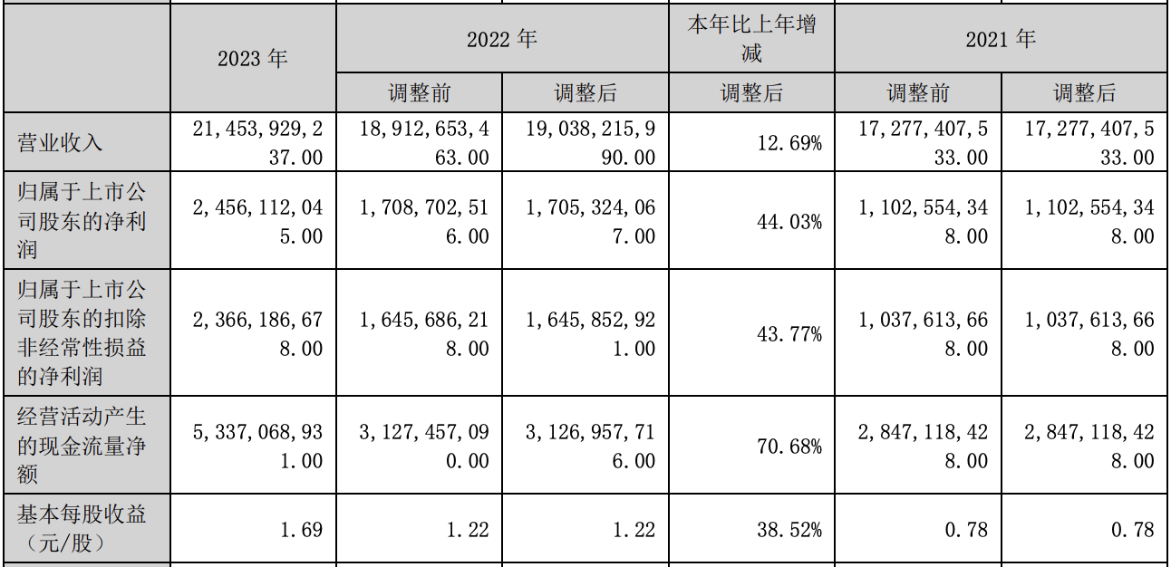 4月24日晚,科伦药业发布了2023年年报以及2024年一季度财报。年报显示,2023年公司实现营业收入214.54亿元,同比增长12.69%;净利润为24.56亿元,同比增长44.03%。公司经营活动产生的现金流量净额为53.37亿元,同比增长70.68%。