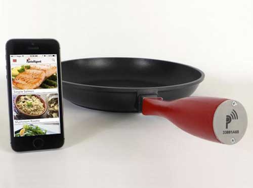这款智能锅配备了温度传感器及蓝牙模块,通过蓝牙和手机连接,你可以先在手机APP 中选择需要的菜谱,智能锅可以检测到锅的温度以及油的热度,用户只需要根据提示翻炒锅内的食物就可以轻松做出美味菜肴。当锅内的食物不熟或者用户离开厨房的时候智能锅还可以发出警报,保证烹饪的安全。