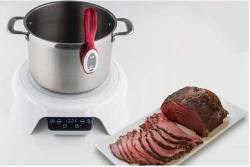 感应式加热对于烹饪来说非常方便,因为调节它的温度完全是通过对热量的提交,而这对于真空烹饪这种方式来说显得非常重要。这种技术可以通过稳定的沸腾温度,让食物在真空状态下慢慢烹煮,并且温度的控制误差上下不超过0.5度。