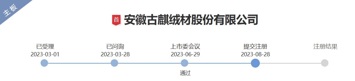 早在2022年7月,古麒绒材就向证监会提交了IPO申请,2023年3月主板全面注册制下,其申请被平移至深交所审核,并在当年6月29日顺利通过了上市委会议。