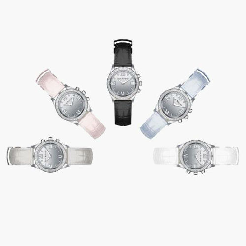 Isaac Mizrahi智能手表可以追踪用户的简单活动,售价为249美元,是系列手表中最低的。有两种施华洛世奇水晶(Swarovski Crystal)轮郭的表盘供用户选择,一款是银色,一款是金色不锈钢,惠普还为手表搭配了5种不同颜色的皮制表带。