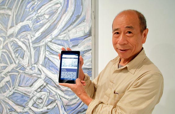 台开集团与日本「物联网之父」坂村健合作开发,运用在智慧家庭与智慧城市的物联网系统,昨(19)日更扩大应用在画展的智慧导览系统,取代传统由人导览,不受时间空间限制,直接透过平板电脑或手机,就可随自己步调参观作品。