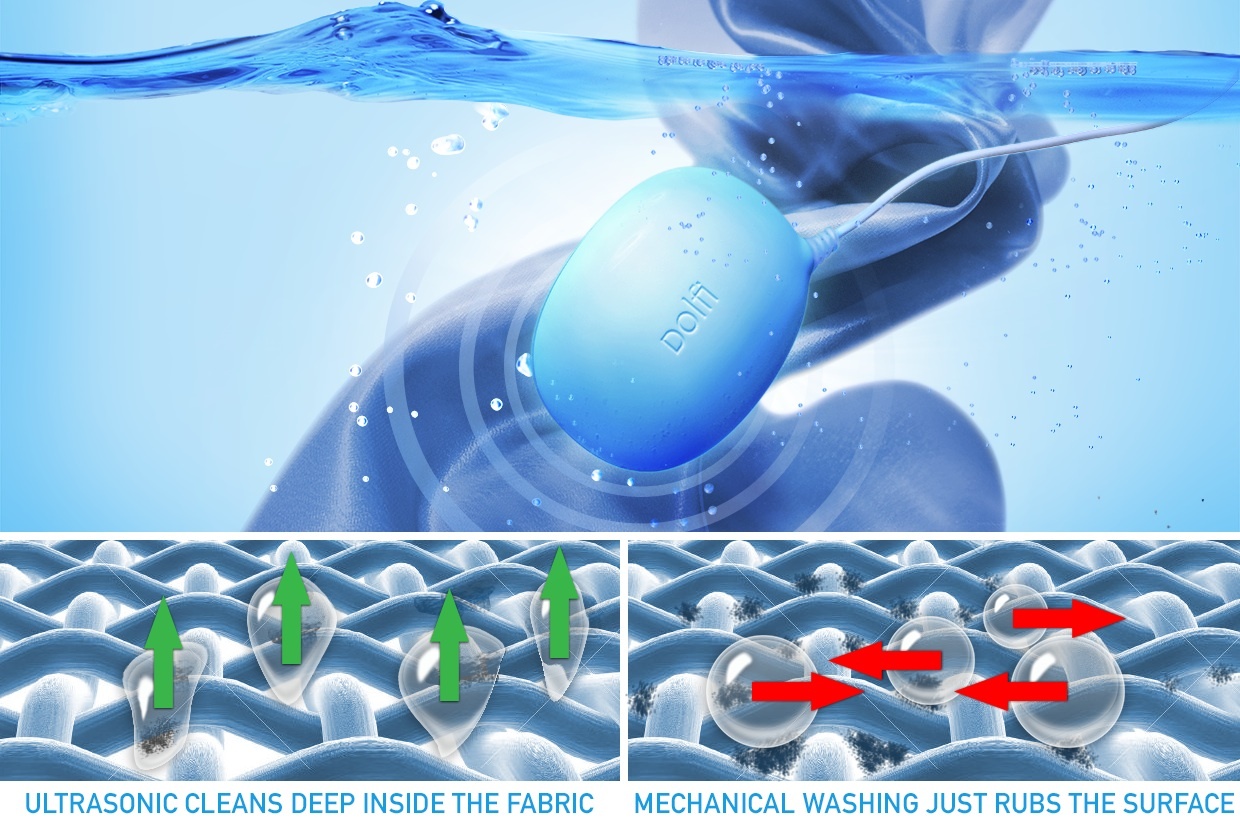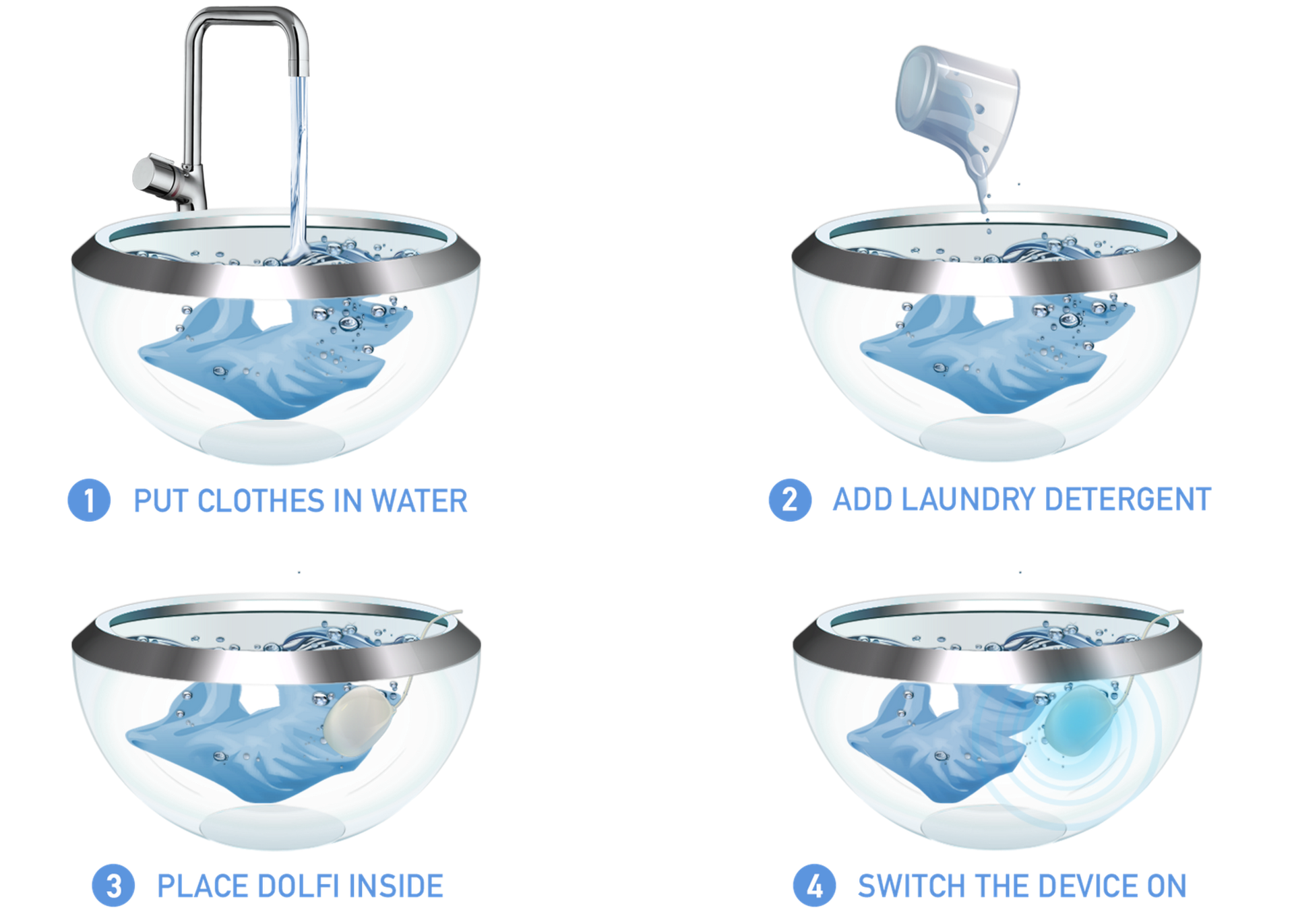 你可以将 Dolfi 看做一个温和型洗涤设备,无论你处于何时何地,只需将其接通电源,打开开关,然后将它丢进装有温水、洗涤剂和待洗衣物的水槽里就好了。