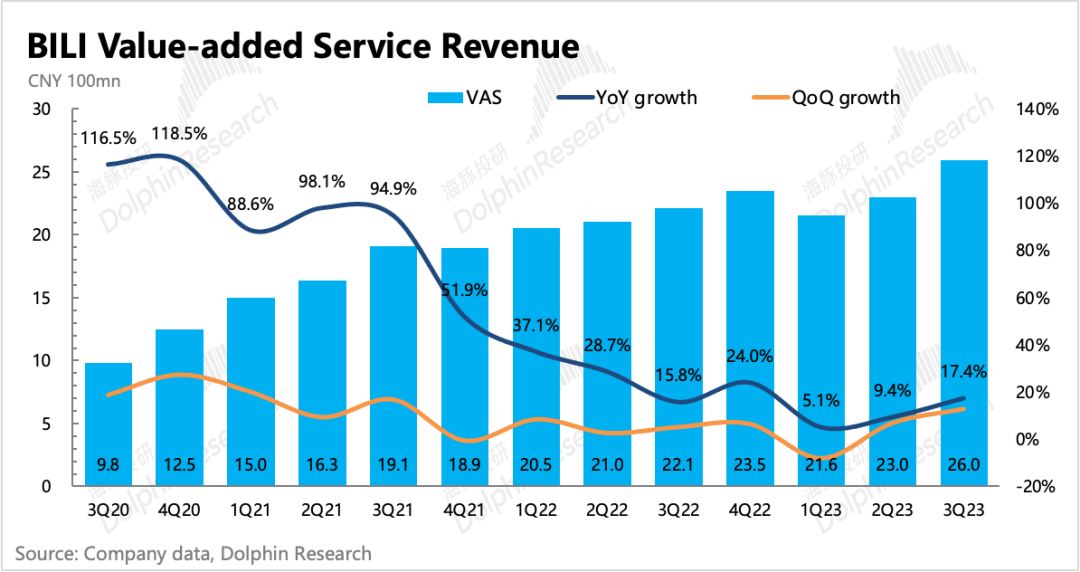 大会员业务因为日漫限额、更新节奏以及题材限制等因素,仍然在消化影响,不过三季度正值暑期旺季,叠加一些自制综艺上线,B站大会员数量环比净增了65万,付费率为6.2%,整体保持稳定。