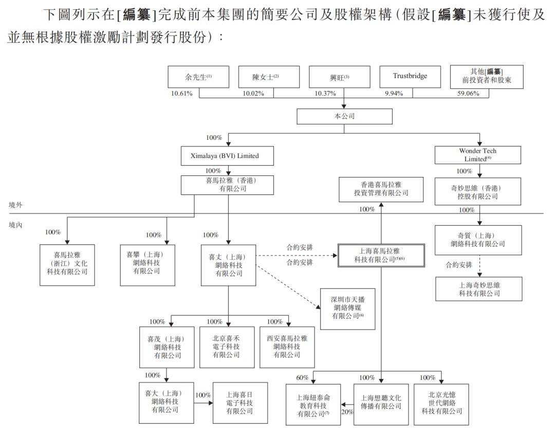 递表时,兴旺持有喜马拉雅10.37%的股份,为最大外部投资方;其次是Trustbridge,持股9.94%;上海证大通过ZendaiRadio Limited持股0.60%。余建军通过Xima Holdings Limited持股10.61%;陈宇昕通过Touch Sound Limited持股10.02%。