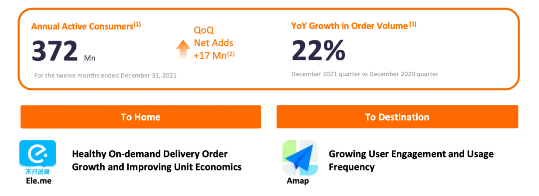 2021年7月,阿里巴巴宣布基于地理位置服务,形成包括饿了么、高德和飞猪在内的生活服务板块,该板块由“到家+到目的地”双向驱动。从财报结果来看,调整的价值已经有所显现。