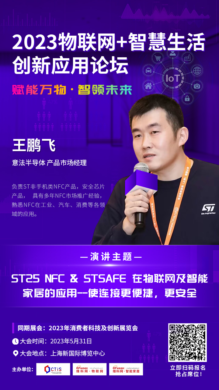 意法半导体产品市场经理王鹏飞将出席2023物联网+智慧生活创新应用论坛