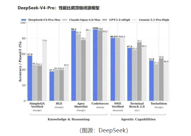- DeepSeek V4同步适配华为昇腾、寒武纪、海光、摩尔线程、沐曦、昆仑芯、平头哥、天数智芯8 家主流国产芯片,其中昇腾 950PR 单卡推理性能达英伟达 H20 的 2.87 倍,能耗降低 40%。