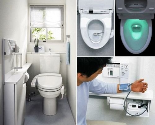 日本的智能化家居还在厕所的便器垫圈上安装有血压计,当人坐在便器上时血压计便能检测其血压。而安装在便器内的血糖检测装置,能自行截流尿样并测出血糖值。此外,厕所内洗手池前的体重仪,可在人洗手的同时测量体重。检测结果均能出现在一个显示器上,全家人的检测值都可被分别保存。